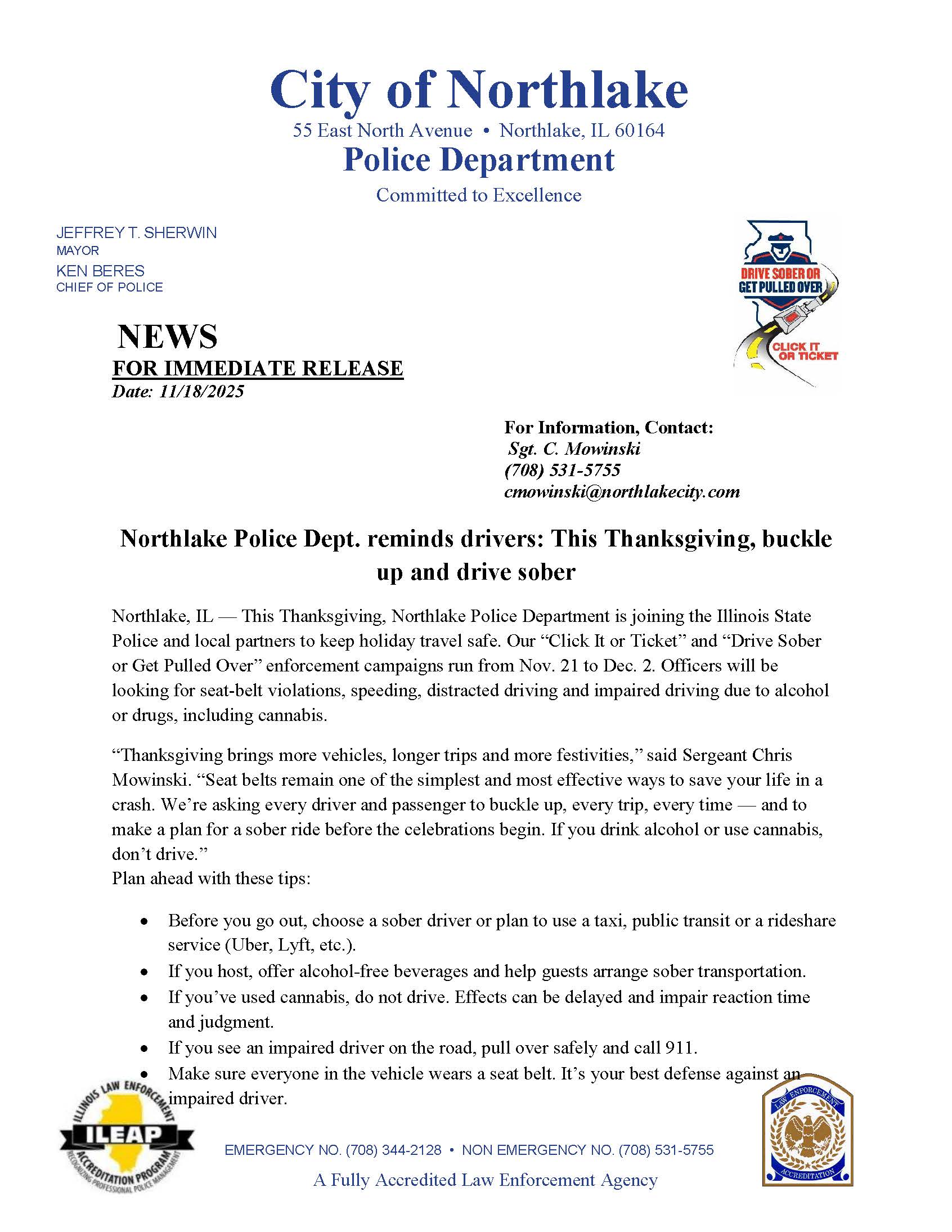 Northlake Police Department Announces Results of Labor Day Safety Campaign